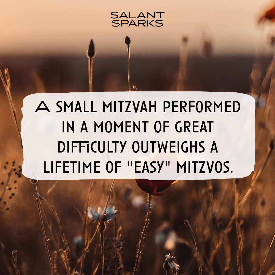 3. The Commitment Push: Commit to doing that one act specifically because it is hard. Document the feeling afterward. If I knew for a fact that this specific "hard" mitzvah was worth 500 "easy" ones, would I still be frustrated by the difficulty, or would I be grateful for the opportunity to gain so much with one effort?
