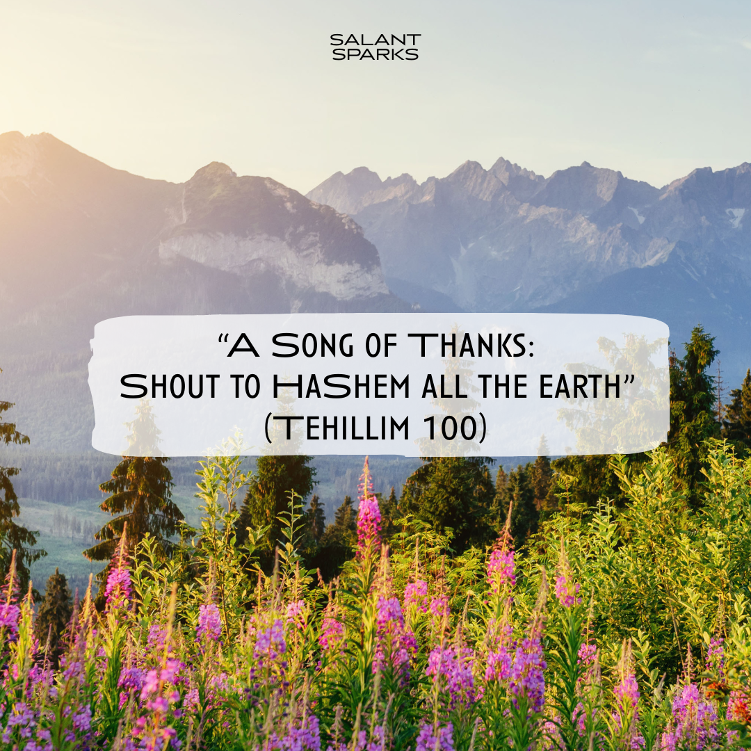 “A Song of Thanks: Shout to HaShem all the earth” (Tehillim 100).