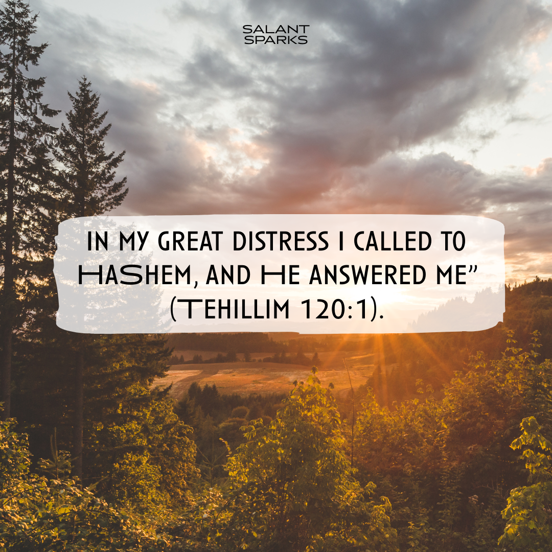“A Song of Ascents. In my great distress I called to HaShem, and He answered me” (Tehillim 120:1).