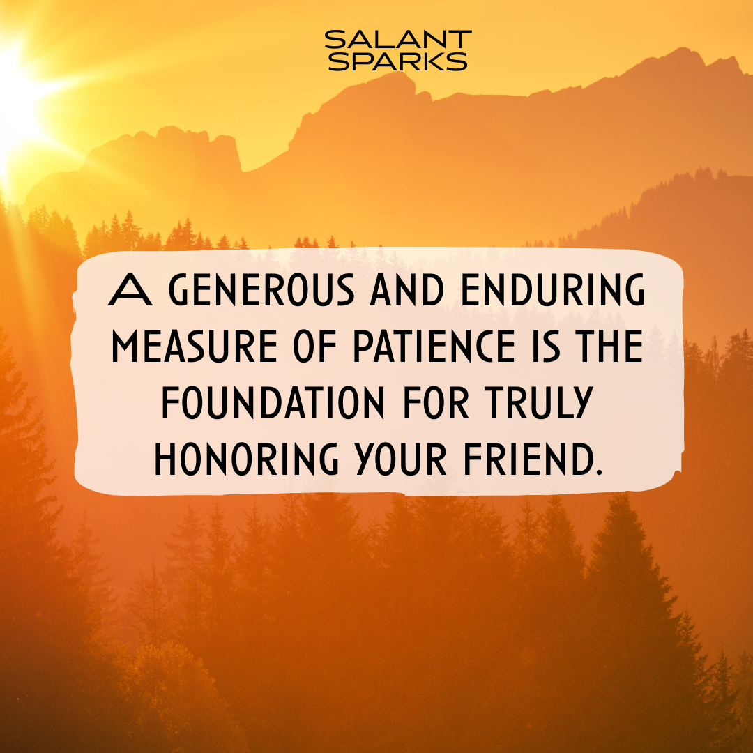 A generous and enduring measure of patience is the foundation for truly honoring your friend. Without patience, even small irritations can lead to words or actions that cause offense, wounding the bond of friendship. When one becomes easily angered, respect inevitably diminishes; anger is, in essence, a breach of honor.